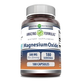 Amazing Formulas Magnesium Oxide Supplement | 500 Mg Per Serving | 180 Capsules | Non-GMO | Gluten-Free | Made in USA