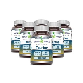 Amazing Formulas Taurine 1000mg Capsules Amino Acid Supplement | Non-GMO | Gluten Free | Made in USA (100 Count | 6 Pack)..