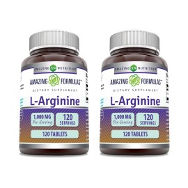 Amazing Formulas L-Arginine Supplement | 1000 Mg Per Serving | Tablets | Amino Acid Supplement for Women & Men | Non-GMO | Gluten Free | Made in USA (120 Count | 2 Pack)