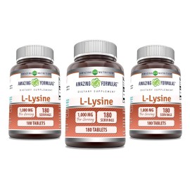 Amazing Formulas L-Lysine 1000mg Amino Acid Tablets Supplement | Non-GMO | Gluten Free | Made in USA (180 | 3 Pack)..