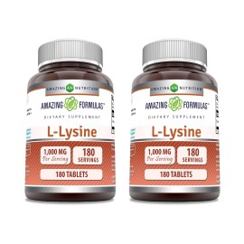 Amazing Formulas L-Lysine 1000mg Amino Acid Tablets Supplement | Non-GMO | Gluten Free | Made in USA (180 | 2 Pack)..