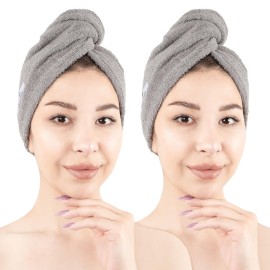 American Soft Linen 100% Cotton Hair Towels for Women, Head Towel Cap, Cotton Hair Turban Towel Wrap for Long Curly Anti Frizz Hair, Soft and Absorbent Cotton Hair Towels 2 Pack, Light Gray