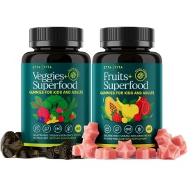 (120 Chews) Fruits and Veggies Supplement - Super Greens Gummies (9 Superfruits & 30 Veggies) Mushrooms, Fruit and Vegetable Vitamins, Non-GMO, Pectin-Based, Gluten-Free, No Capsules
