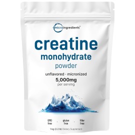 Creatine Monohydrate Powder 1 kg (2.2 Lbs), 5000mg Per Serv, Micronized Creatine Powder, Unflavored, Pure, No Filler, Keto & Vegan Friendly, Easy Dissolve Pre Workout Creatine for Women and Men
