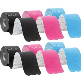 Kinesiology Tape Pro Athletic Sports Waterproof Breathable Latex Free Tape for Ankle Wrists Knees Elastic Running Tennis Swimming Football Sports Activities Tapes (6 Pack, Mixed Color)