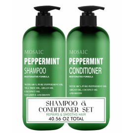 ALL NATURAL SHAMPOO AND CONDITIONER - Mosaic Peppermint Oil restorative and moisturizing shampoo and conditioner set is infused with 100% Pure Peppermint Oil, Tea Tree Oil, Moroccan Argan Oil, Coconut Oil, Vitamin E, and Biotin. NATURAL HAIR GROWTH SHAMPOO & CONDITIONER - Pepper Mint Oil along with our added natural oils helps create a deep condi..