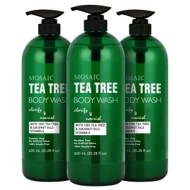ADDED NATURAL INGREDIENTS - Made with natural Coconut Oil, and Jojoba Oil, and Tea Tree Oil for skin. Combination of these oils creates a natural body wash that is ideal as a sensitive skin body wash and all skin types. TEA TREE OIL BODY WASH & FOOT WASH - Mosaic hypoallergenic body wash helps with eczema, ringworm, acne body wash, body odor, skin ..
