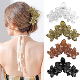 ANBALA 4PCS Hair Clips Flower Hair Clips for Women Large Claw Clips for Thick Hair Strong Hold Non-slip Hawaii Flower Hair Clip for Women Girls (Colorful)