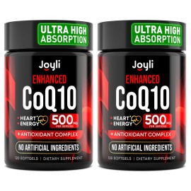 JOYLI Nutrition 2 Pack CoQ10 500mg - High Absorption Coenzyme Q10 Supplement - Co Q 10 for Energy & Vitality - Alternative to CoQ10 400mg & 300mg - 240 Softgels