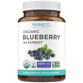 Zazzee USDA Organic Blueberry 10:1 Extract, 5000 mg Strength, 120 Vegan Capsules, 4 Month Supply, Concentrated and Standardized 10X Whole Fruit Extract, 100% Vegetarian, Non-GMO, Made in The USA