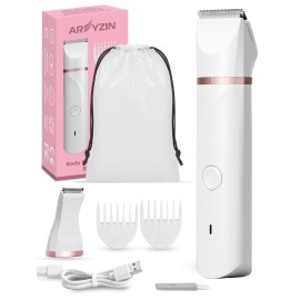 Bikini Trimmer Pubic Hair Trimmer for Women Legs Bikini Line Armpit Rechargeable Electric Shaver for Women Hair Removal with Snap-in Ceramic Blades IP7X Waterproof, White