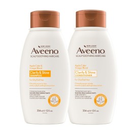 Aveeno Apple Cider Vinegar Shampoo + Conditioner Set, Hair Care Bundle for Balance & High Shine, Daily Clarifying & Soothing Scalp Shampoo & Conditioner for Oily & Dull Hair, Two Pack, 2 x 12 fl. oz