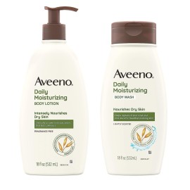 Gently cleanse and nourish dry skin with this two-pack skincare set with Aveeno\'s Daily Moisturizing Lotion and Daily Moisturizing Body Wash. These two products, from a dermatologist-recommended skin care brand for over 70 years, leave skin healthy looking and hydrated. The clinically proven and award-winning daily fragrance-free body lotion inten..