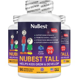 NuBest Tall Kids - Toddlers Vitamins and Kids Vitamins for Age 2 to 9 - Support Bone Strength, Overall Health and Immunity - Animal Shapes - 270 Chewable Berry Tablets | Pack 3