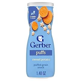 Gerber Stage 3 Baby Snacks, Sweet Potato Puffs, Puffed Grain Snack, Baby Led Feeding, Iron & Choline, Puffs Snacks for Babies