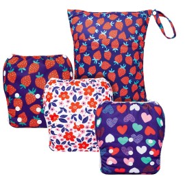 ALVABABY 3pcs Large Baby Swim Diapers with 1pcs Wet Bag Reuseable Washable & Adjustable for Swimming Lesson & Baby Boy and Girl 3ZYKL02