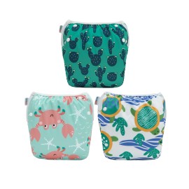 Wegreeco Baby & Toddler Snap One Size Adjustable Reusable Baby Swim Diaper (Plant, Small, 3 Pack)