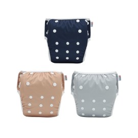 ALVABABY Baby Swim Diapers 3pcs One Size Reuseable Washable & Adjustable for Swimming Lesson & Blue Gray White 3SWY18