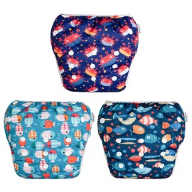Babygoal Baby Boy Swim Diapers 3 Pack for 8M-3T Babies and Toddlers, Reusable Adjustable Washable for Swimming Lessons-Crab,Fish,Starfish