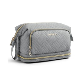 BAGSMART Travel Makeup Bag, Cosmetic Bag Make Up Organizer Case, Large Wide-open Pouch for Women Double Layers Purse for Toiletries Accessories Brushes Greey