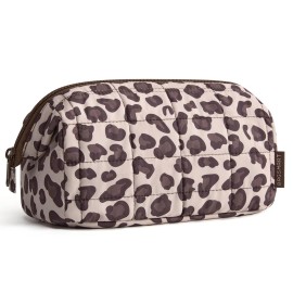 BAGSMART Makeup Bag Travel Toiletry Bag, Puffy Padded Make Up Bags for Women Makeup Organizer Case, Wide-open Pouch Purse Travel Essentials Toiletries Accessories Brushes, Leopard