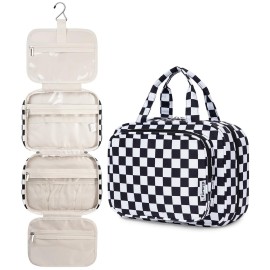 - Large Capacity-12 x 4.7 x 9 inches. Multi-functional toiletry bag can hold your full-sized toiletries, cosmetics, lotions, shampoo, skin-care products and other travel accessories you need well-organized. | Special Design- Double side full open design keeps cosmetic bottles can stand upright in the middle compartment. Both sides pockets are design for makeup brushes, eyeshadow palette and other cosmetics. | Easy to Access- Features dual zippered, large opening, making it quickly reach into the main compartment.Simply pull on the connected zip puller for full exposure. | Visible Design-The compartment is visible and the inner PVC pocket which is easy to clean can keep the wet/dry items separated. | Occassion - It can be a toiletry bag or cosmetic bag for daily use, or a travel toiletry organizer for family use.