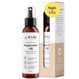 Bare Botanics Magnesium Oil Spray 4oz Unscented | Topical Magnesium Chloride Mist from The Dead Sea | Handpoured in Madison, WI