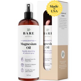 Bare Botanics Magnesium Oil Spray 16oz Unscented | Topical Magnesium Chloride Mist from The Dead Sea | Handpoured in Madison, WI