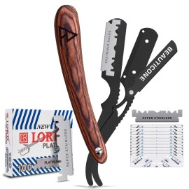 BEAUTICONE Straight Razors for Men, Straight Edge Razor, 100 Single Edge Blades, Stainless Steel, Barber Razor for Men\'s Shaving, Barber Shaving Knife, Wooden, Swinglock