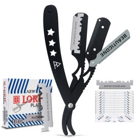 BEAUTICONE Straight Razors for Men, Straight Edge Razor, 100 Single Edge Blades, Stainless Steel, Barber Razor for Men\'s Shaving, Barber Shaving Knife, Swinglock