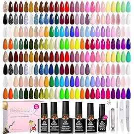Beetles 110 PCS Gel Nail Polish Set, 100 Colors Infinite Inspiration Gift Spree All Season Red Brown Green Black Gel Polish with 5Pcs Base Top Coat Soak off UV Gel for Manicure Lovers DIY at Home