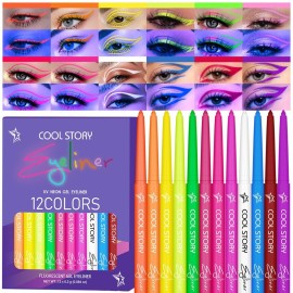 Unleash your creativity with the 12 Colors UV Neon Eyeliner Set, designed to make you the center of attention at any event! Whether you\'re getting ready for a music festival, rave, club night, cosplay event, or Halloween party, this highly pigmented, UV-reactive eyeliner will give your look an electrifying edge. Glows Under UV Light! - Want to st..