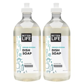 Better Life Dish Soap - Liquid Dishwashing Soap with Vitamin E and Aloe for Home & Kitchen Sink - No Gloves Required Kitchen Soap for Sensitive Skin - 22oz (Pack of 2) Unscented