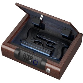 BILLCONCH Gun Safe for Handgun - Biometric Pistol Safe 4 Ways Quick Access with Fingerprint/Full-digital Keypad/Key/APP Lock and Security Cable for Nightstand Bedside Home - Antique Bronze