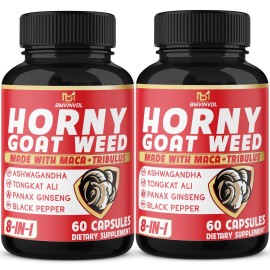 -Recommendations: As a dietary supplement, take two (2) capsules once daily or as directed by your healthcare professional. -With 2 Packs(120 Capsules), BMVINVOL Horny Goat Weed Capsules provide you with 60 servings. -Contains 8 Ingredients: Horny Goat Weed, Panax Ginseng, Tribulus, Ashwagandha, Maca, Tongkat Ali, Nettle, Black Pepper...