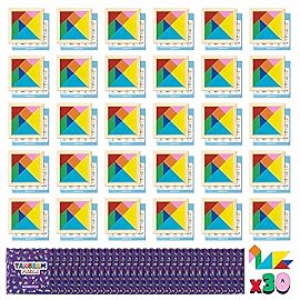 BONNYCO Tangram Puzzle Wooden Pack 30 Kids Party Favors. Goodie Bags Stuffers for Kids 3-5 4-8, Return Gifts for Birthday Party. Goody Bag Stuffers, Pinata Filler Toys Bulk. Classroom Prizes, Rewards