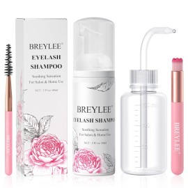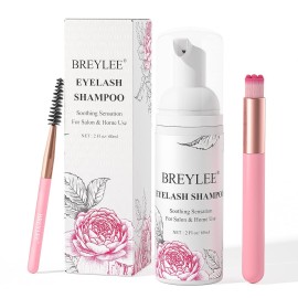 Eyelash Extension Cleanser, BREYLEEEyelash Extension Shampoo Eyelash Extension Foam & Brushes Eyelid Cleanser for Makeup Remover Paraben & Sulfate Free for Salon and Home Use(200ml, 7 fl oz)