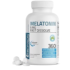 Bronson Melatonin 5mg Fast Dissolve Peppermint Tablets with Vitamin B6 - Promotes Relaxation, 360 Vegetarian Chewable Lozenges