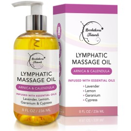 Lymphatic Massage Oil for Massage Therapy & Natural Lymphatic Drainage | Premium Quality with Arnica & Lavender Oil | for Post Surgery Recovery & Detox | 8oz by Brookethorne Naturals