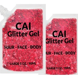 Face, Body & Hair Glitter Gel - Halloween Glitter for Kids and Women - 3 Oz Cosmetic-Grade Gel w/Moon & Stars for Festivals & Halloween Party, Easy Apply & Wash Off - Red 2Pack