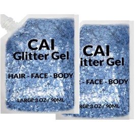 Face, Body & Hair Glitter Gel - Halloween Glitter for Kids and Women - 3 Oz Cosmetic-Grade Gel w/Moon & Stars for Festivals & Halloween Party, Easy Apply & Wash Off - Blue 2Pack