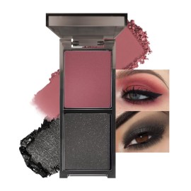 Wine Red Black Two Color Matte Shimmer Eyeshadow,Bright Eye Shadow Powder,Professional Long-Lasting Waterproof Makeup Palette,Easy-To-Apply and Compact for Travel..