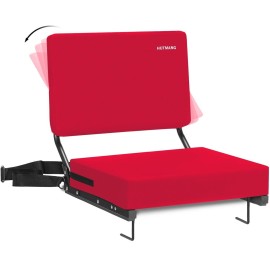 - Comfortable Stadium Seat with Back Support: Equipped with a bungee reinforced padded seat that is 17" wide and 14" deep for maximum comfort. Features a supportive 15" high backrest so you can enjoy outdoor and sporting events without a sore back. | Sturdy Design: This padded bleacher chair is constructed with a durable aluminum frame. Sturdy yet lightweight, this stadium seat for bleachers weighs 5.3 pounds and can accommodate up to 250 pounds. | Bleacher Hook for Stability and Safety: The bleacher hook on the bottom of the seat will keep it securely in place to prevent sliding and leaning so you can safely cheer with your family and friends without fear of falling. | Water-Resistant Cushions: The perfect bleacher seat with cushions made from durable canvas fabric that provides water resistance for those rainy days and breathability for those scorching summer days. | Easy Transport and Compact Storage: Folds down flat for convenient storage and portability. Effortlessly carry this portable stadium seat by utilizing the shoulder strap and built-in cushioned handle.