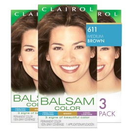 Clairol Balsam Permanent Hair Dye, 611 Medium Brown Hair Color, Pack of 3