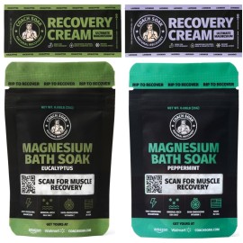 Coach Soak introduces the Recovery Bath Soak Eucalyptus Tea Tree and Magnesium Lotion with MSM Cooling Menthol Bundle, a refined solution for natural rejuvenation and relaxation. This bundle is ideal for athletes and fitness enthusiasts seeking muscle support and skin nourishment. The magnesium bath salts, enriched with Dead Sea salts, offer a rela..
