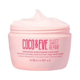 Coco & Eve Sweet Repair Repairing and Restoring Hair Mask. 85% stronger hair, reduce hair damage by 65%. Biomimetic Ceramides, Hyaluronic Acid, Vegan Keratin. Increase Hydration & Shine.