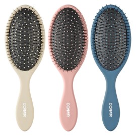 Conair Detangling Hair Brush Set, 3-Pack Detangler Brushes for Wet or Dry Hair, Gentle Detangler for All Hair Types, Bristle Hair Brushes for Women, Beige, Navy, and Coral