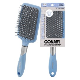 Conair Velvet Touch Paddle Cushion hair brush - Detangling hairbrush - curly or straight styles - men or women - detangler - features soft touch handle - Sky Blue