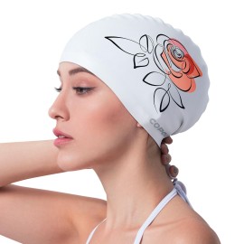 COPOZZ Adult Swim Caps, Silicone Waterproof Comfortable Swimming Cap for Women, Long and Short Hair (Daisy-12yrs+)