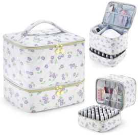CTWWFS Nail Polish Organizer and Nail Lamp Case, Nail Kit Organizer Holds 30 Bottles (15ml - 0.5 fl.oz) and a Nail Lamp, Nail Polish Carrying Case with Manicure Tools Storage Sections (Purple Flower)